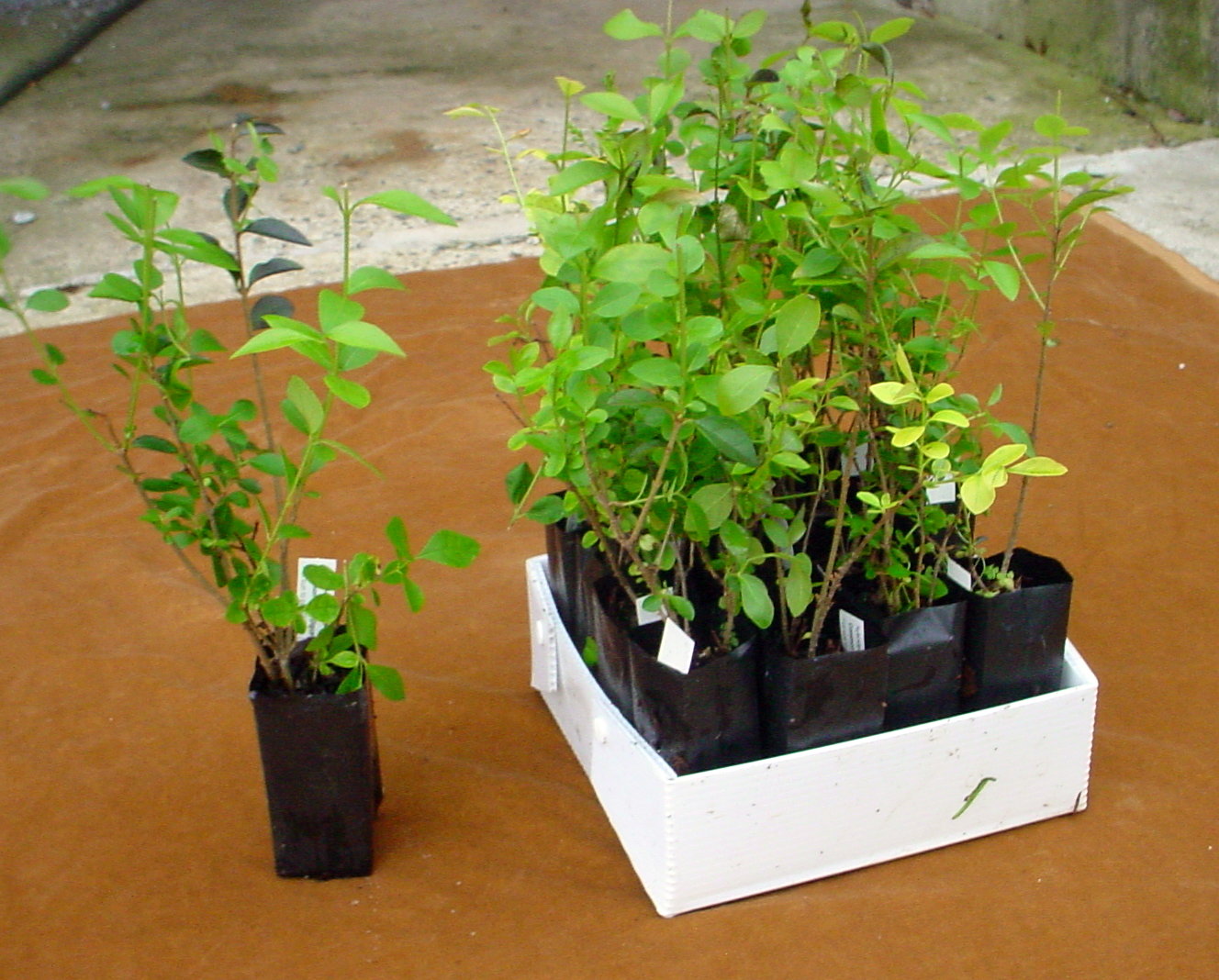 All the hype about bags!. Yes, this mode of planting has been used by many in the US, There are a number of companies that make the bags, anywhere from 1/2 gallon to 75 gallons. At the beginning I made only 1/8 ga. bags. Now I am making half a gallon and 1 gallon bags.
