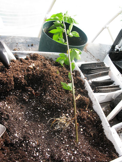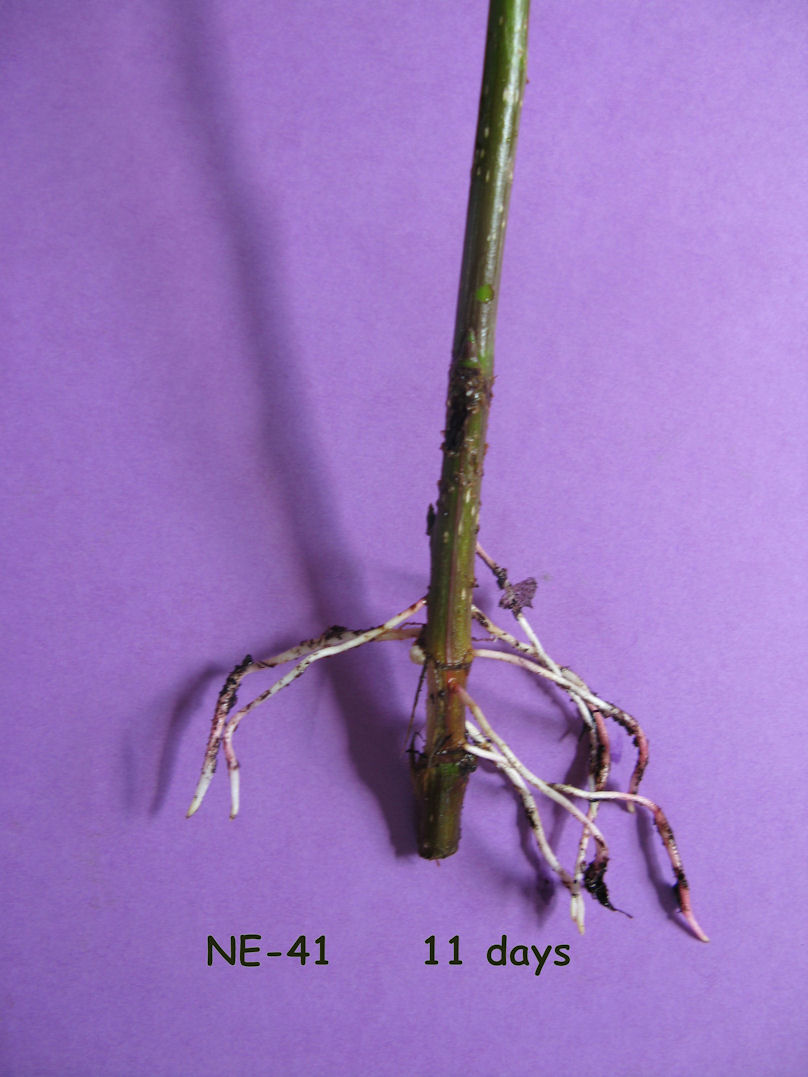 A different success. Mid June, I put a rooterpot on a 2.5 ft. branch of an NE-41 hybrid poplar. I removed it 11 days later, branch already rooted. Here is the photo to prove it Caution After removing a new tree from the rooterpot and potting it, be sure to keep it in the shade for a few days, better yet, under intermittent mist. | . . |